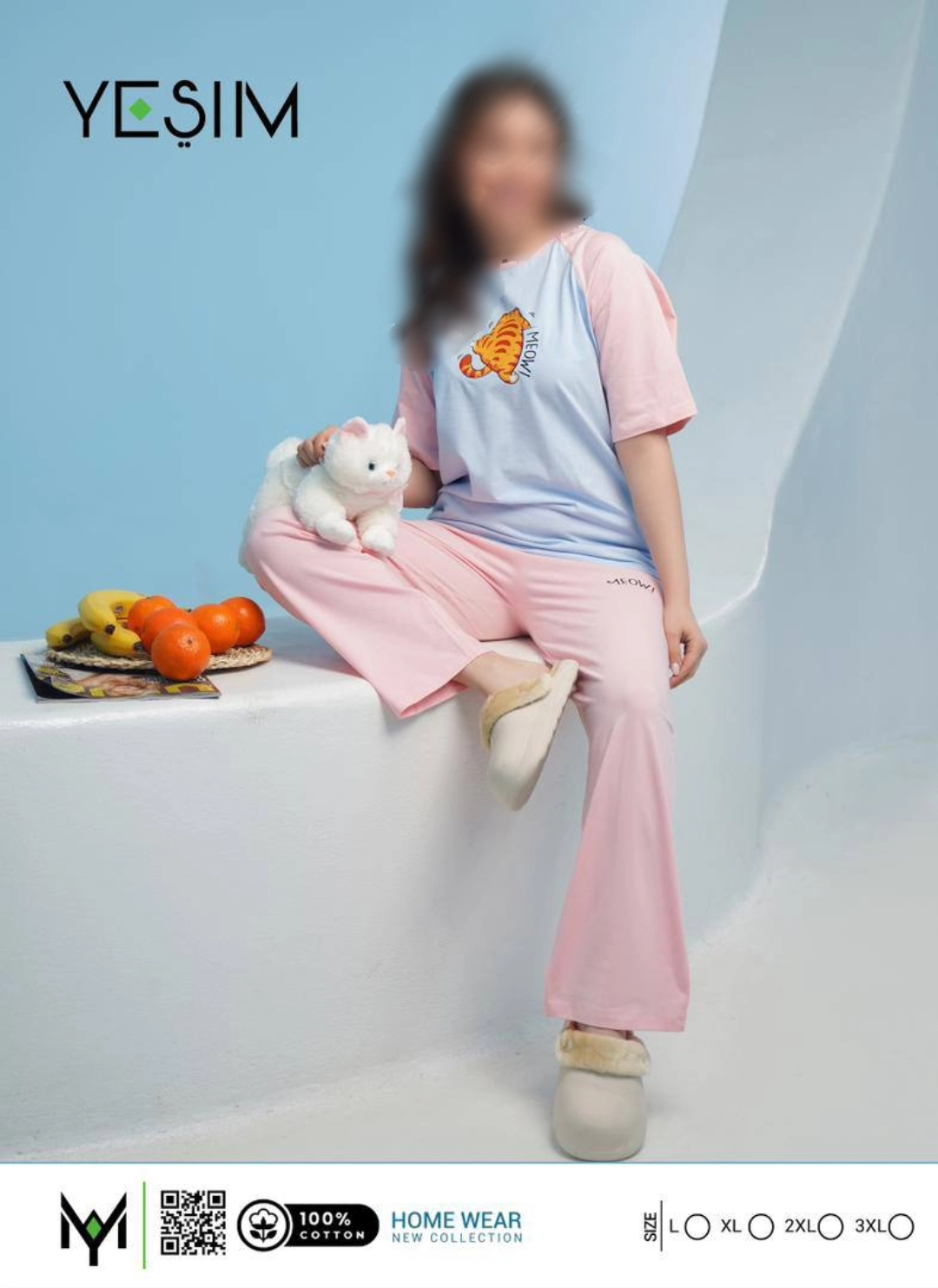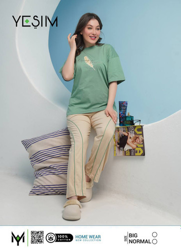 ست خانگی تیشرت و شلوار نخ پنبه برند یشیم سایز ۴۴ تا ۵۰