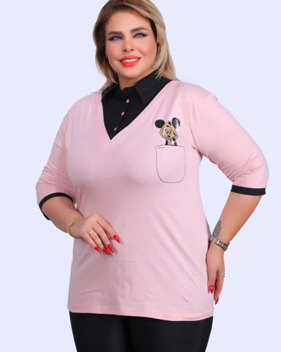 بلوز آستین بلند نخی سایز بزرگ ۴۴ تا ۵۰ طرحبندی