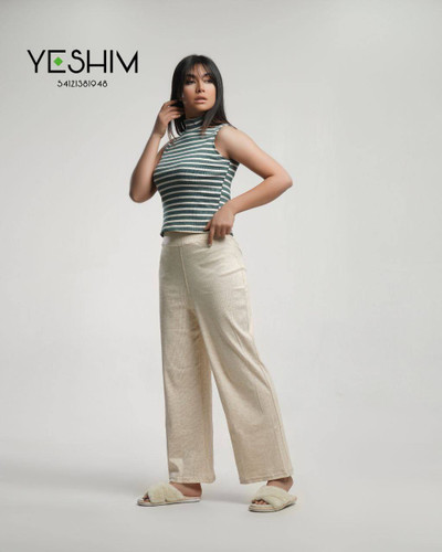 تاپ یقه ایستاده پنبه کبریتی و شلوار دمپا نخ پنبه سایز ۳۶ تا ۳۲