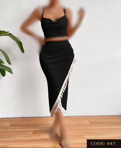 کراپ یقه گره ای و دامن بیسکوییتی سایز ۳۶ تا ۴۲