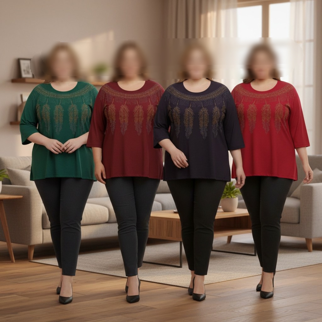 تیشرت آستین سه ربع سایز ۴۲ تا ۴۸ نگین دوزی