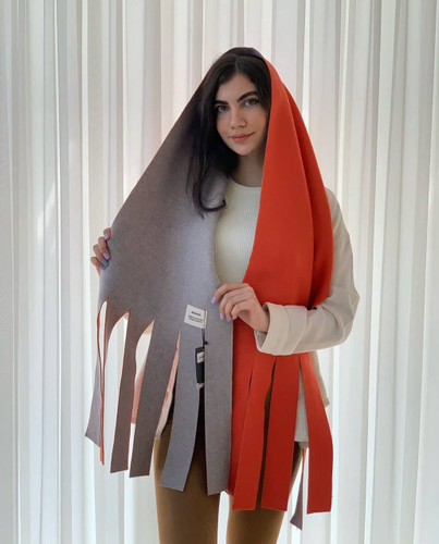کلاه فرانسوی طرح دستبافت و شال بافت رنگبندی عالی