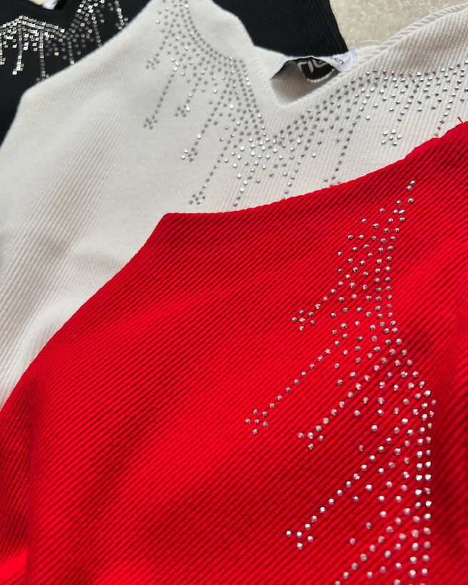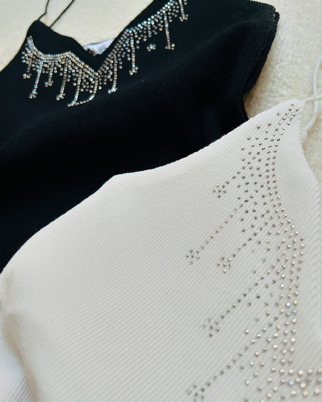 تاپ نگینی یقه هفت بند ماکارونی مناسب مهمونی و زیر کت