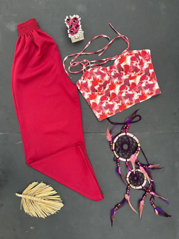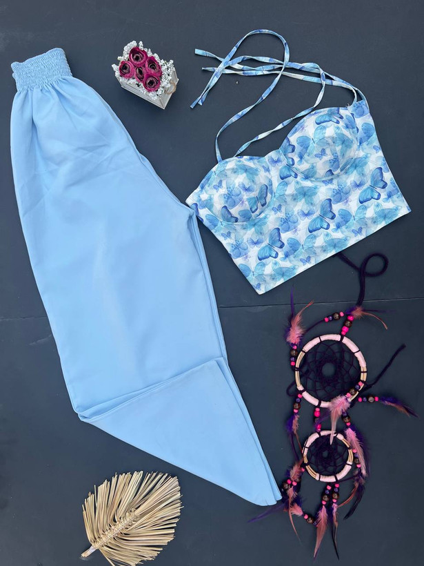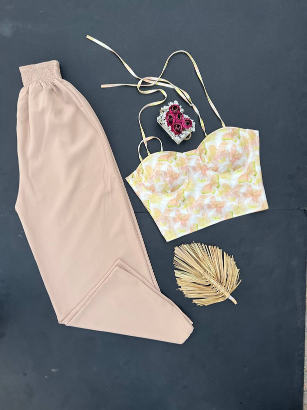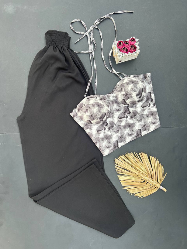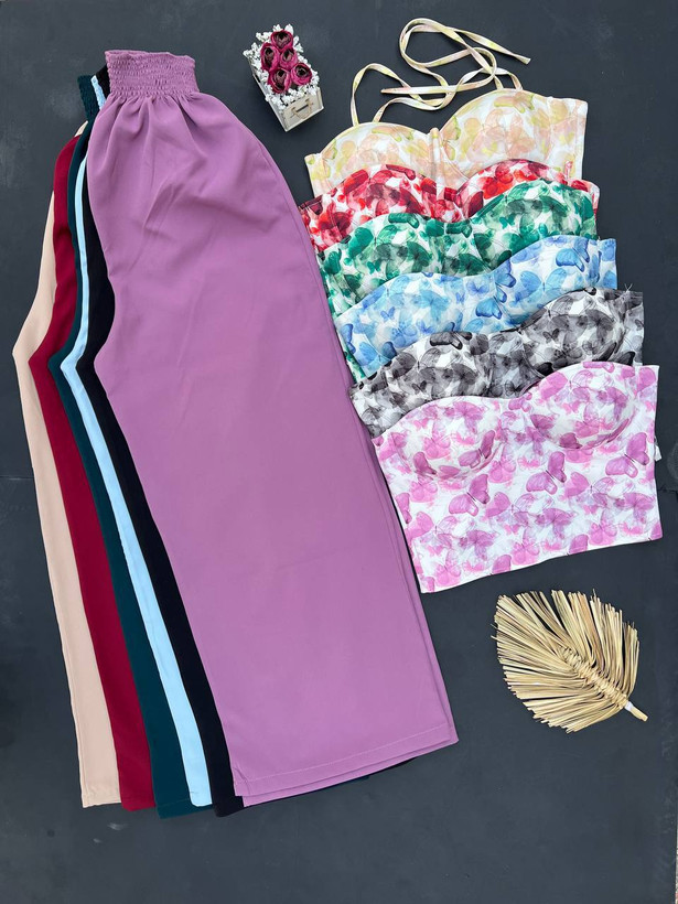 کراپ کاپدار مدل پروانه ای و شلوار دمپا مازراتی فوق العاده شیک سایز ۳۸ تا ۴۲