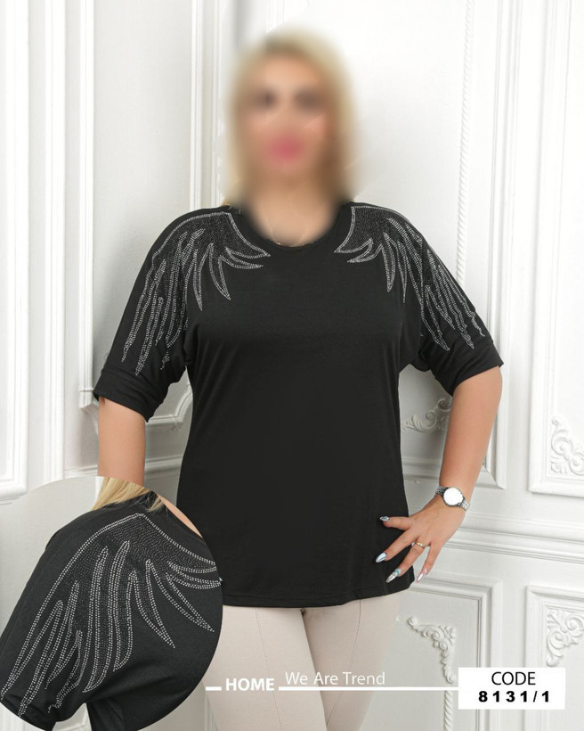 مدل:بلوز آستین سه ربع کیمانویی نگین دار