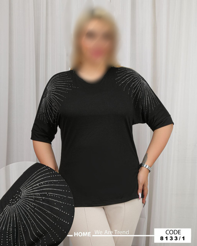 بلوز مشکی آستین کیمونایی نخی سایز ۴۴ تا ۵۰