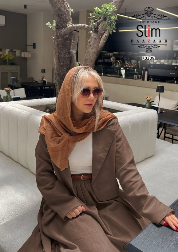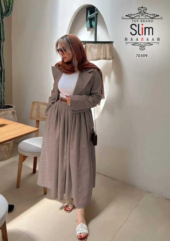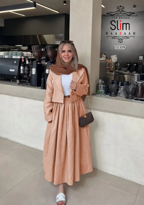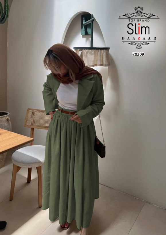 ست کت و دامن جیبدار با کمربند لینن ترک وارداتی شیک