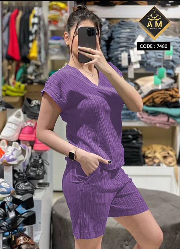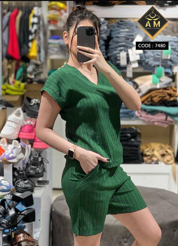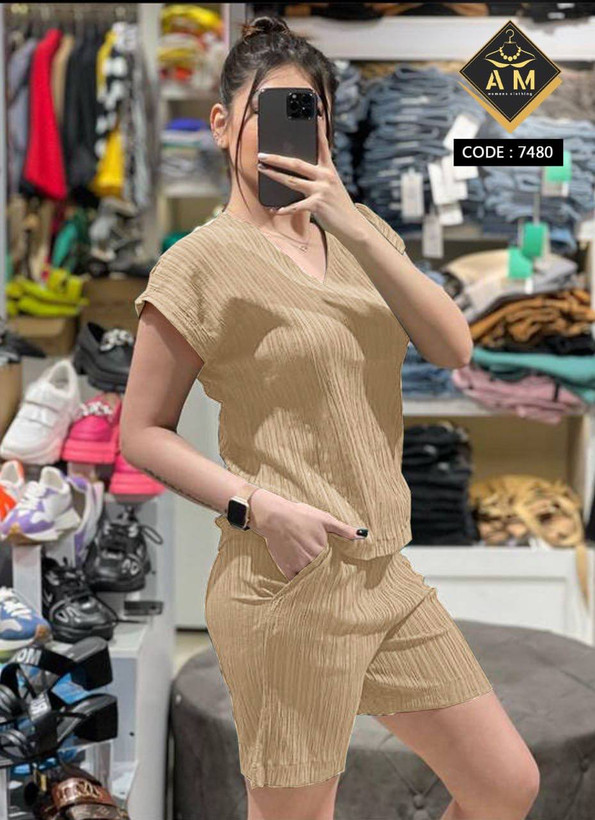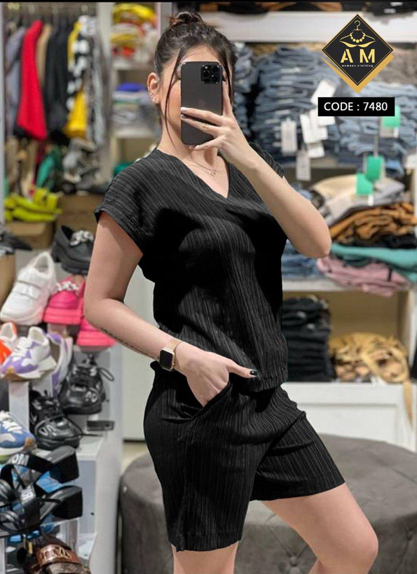 تیشرت یقه هفت و شلوارک جیبدار جنس کراش سایز ۳۶ تا ۴۰