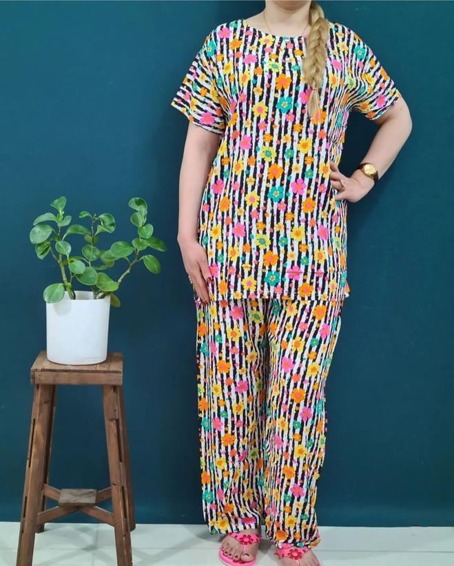 ست راحتی بلوز و شلوار راسته نخ صد درصد کره ای بدون آبرفت سایز ۴۶ تا ۵۴