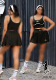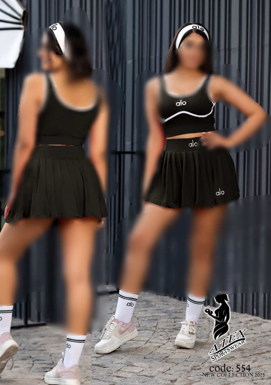 ست چهارتیکه ورزشی نیمتنه کاپدار و دامن با جوراب و هدبند alo