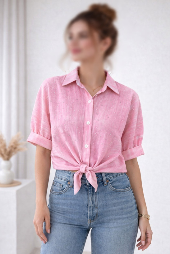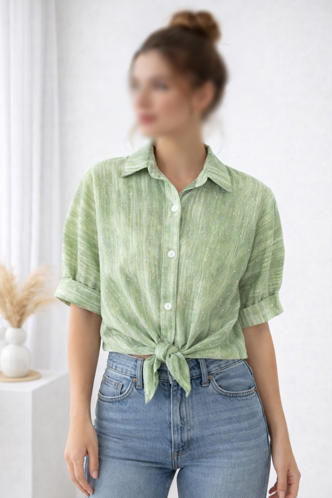 🐬شومیز آستین کلوش جلو گره ای نگین دار