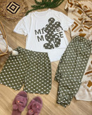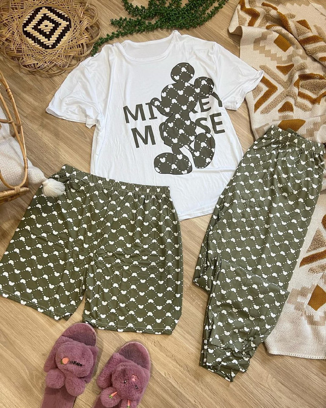 ست سه تیکه تیشرت و شلوار و شلوارک گیاهی وارداتی سایز بزرگ قواره دار