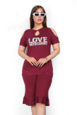 تیشرت سر شانه خالی یقه اشکی و شلواردامنی چین دار نخی شیک