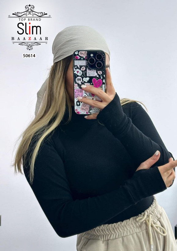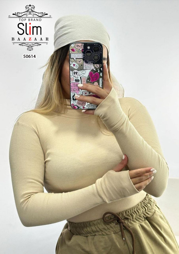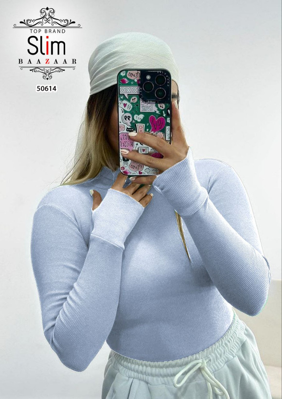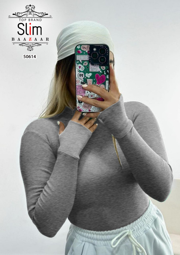 بادی کبریتی یقه اسکی آستین فینگردار قزن دار