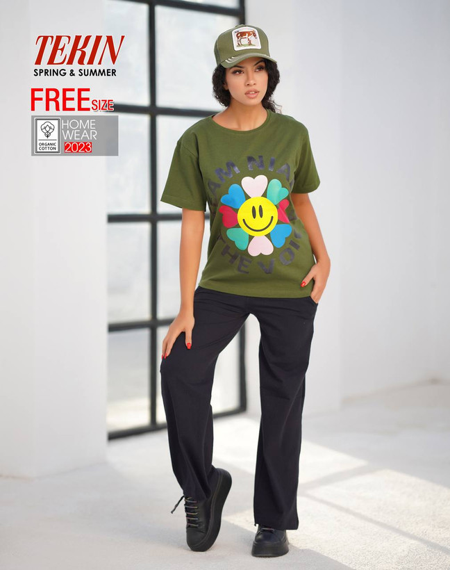 🏵️تیشرت چاپی و شلوار راسته جیبدار
