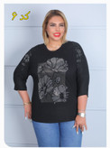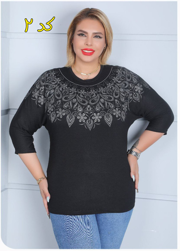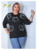 بلوز آستین کیمانویی نخی نگین دوزی مشکی محرم قواره دار سایز ۴۶ تا ۵۴
