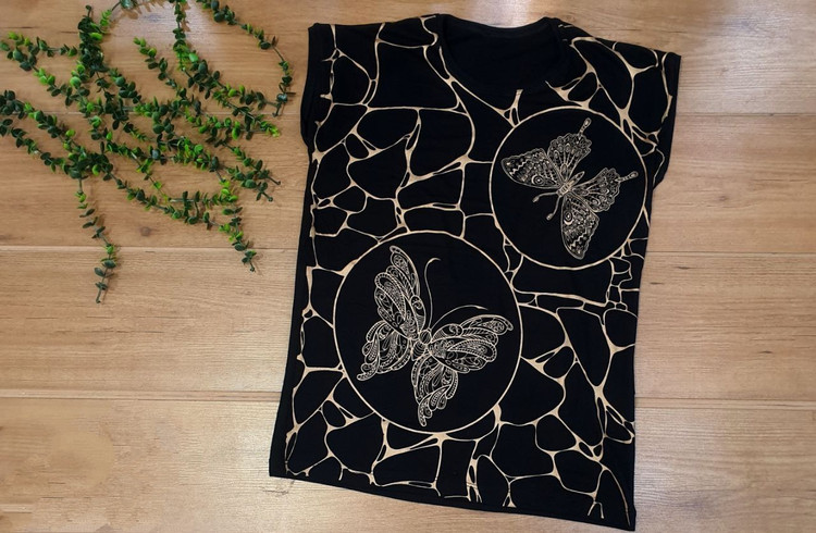 تاپ سارافون مشکی چاپدار قواره دار سایز ۴۲ تا ۵۰