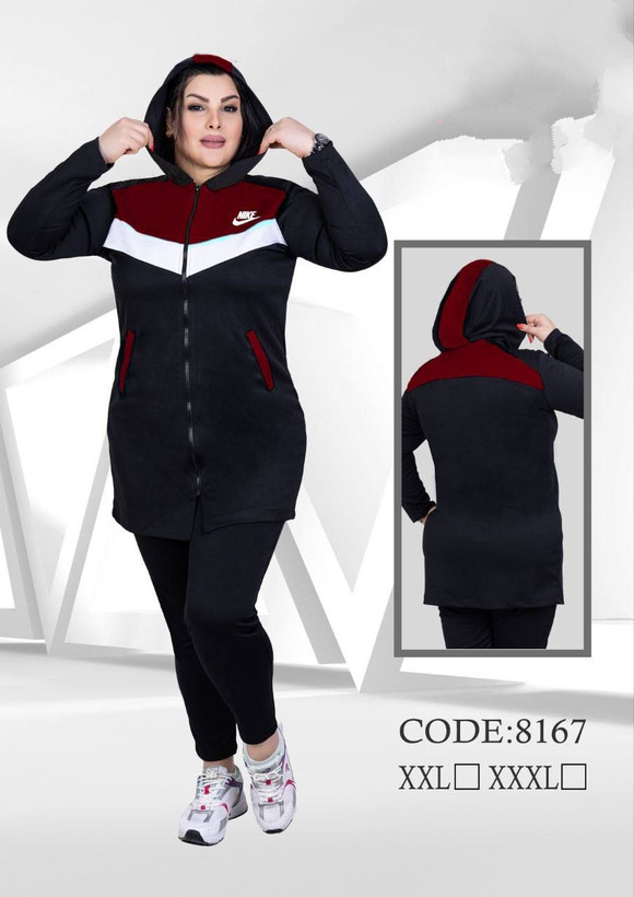 ست ورزشی سایز بزرگ مانتو کلاهدار و شلوار نایکی سایز ۴۲ تا ۵۲