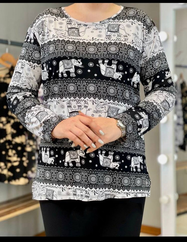 بلوز آستین بلند نخی سایز بزرگ ۴۴ تا ۵۰ طرحبندی