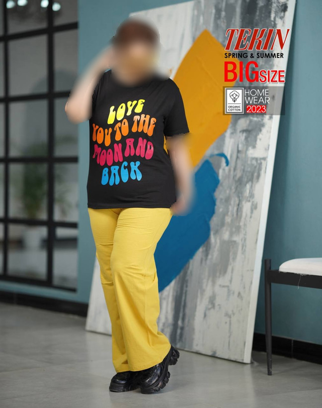 ست خانگی تیشرت و شلوار راسته جیبدار بیگ سایز ۴۴ تا ۵۰