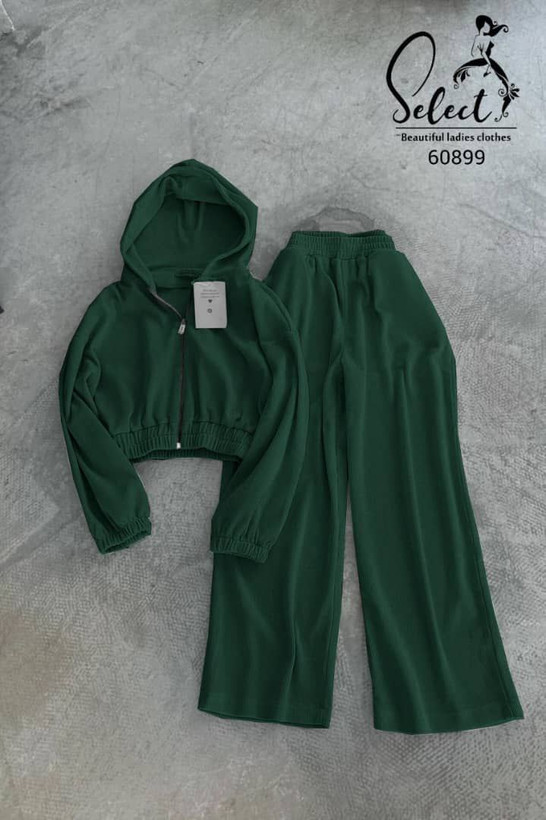 سوییشرت کراپ کلاهدار و شلوار بگ دورس تو کرکی