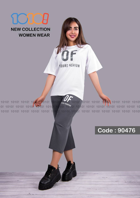 تیشرت و شلوارک نخ پنبه طرح OF دو سایز ۳۸ تا ۴۸