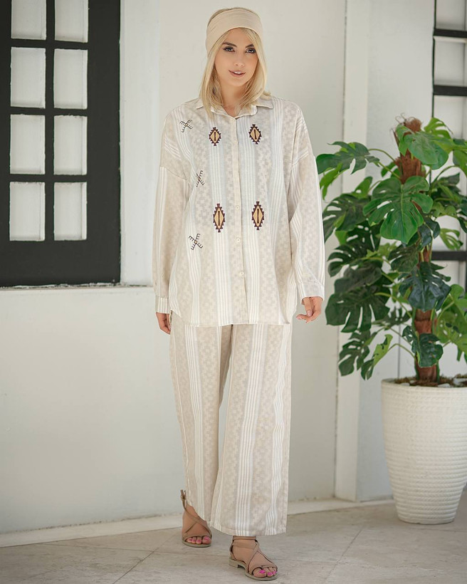 شومیز گلدوزی و شلوار لنین شیک و عالی سایز ۳۸ تا ۴۴