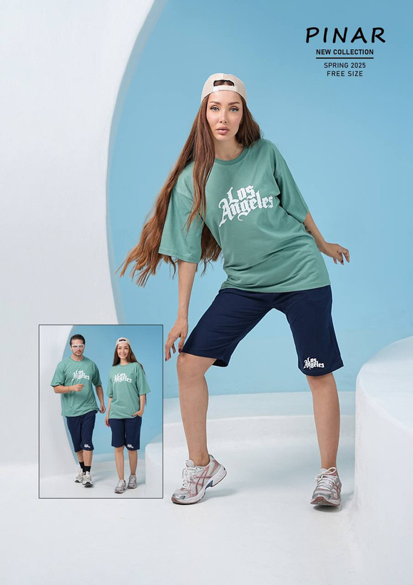 ست زن و مرد تیشرت و شلوارک نخی سایزبندی