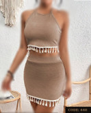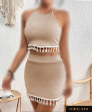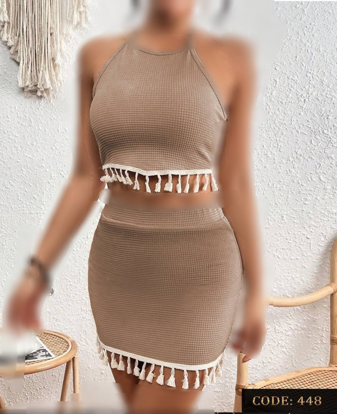 کراپ یقه گره ای و دامن بیسکوییتی سایز ۳۶ تا ۴۲