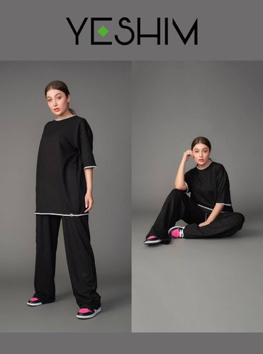 تیشرت لانگ و شلوار بگی دورس پنبه نوار دوزی وارداتی کیفیت تضمینی سایز ۴۲ تا ۴۸ مدل لش و قواره دار