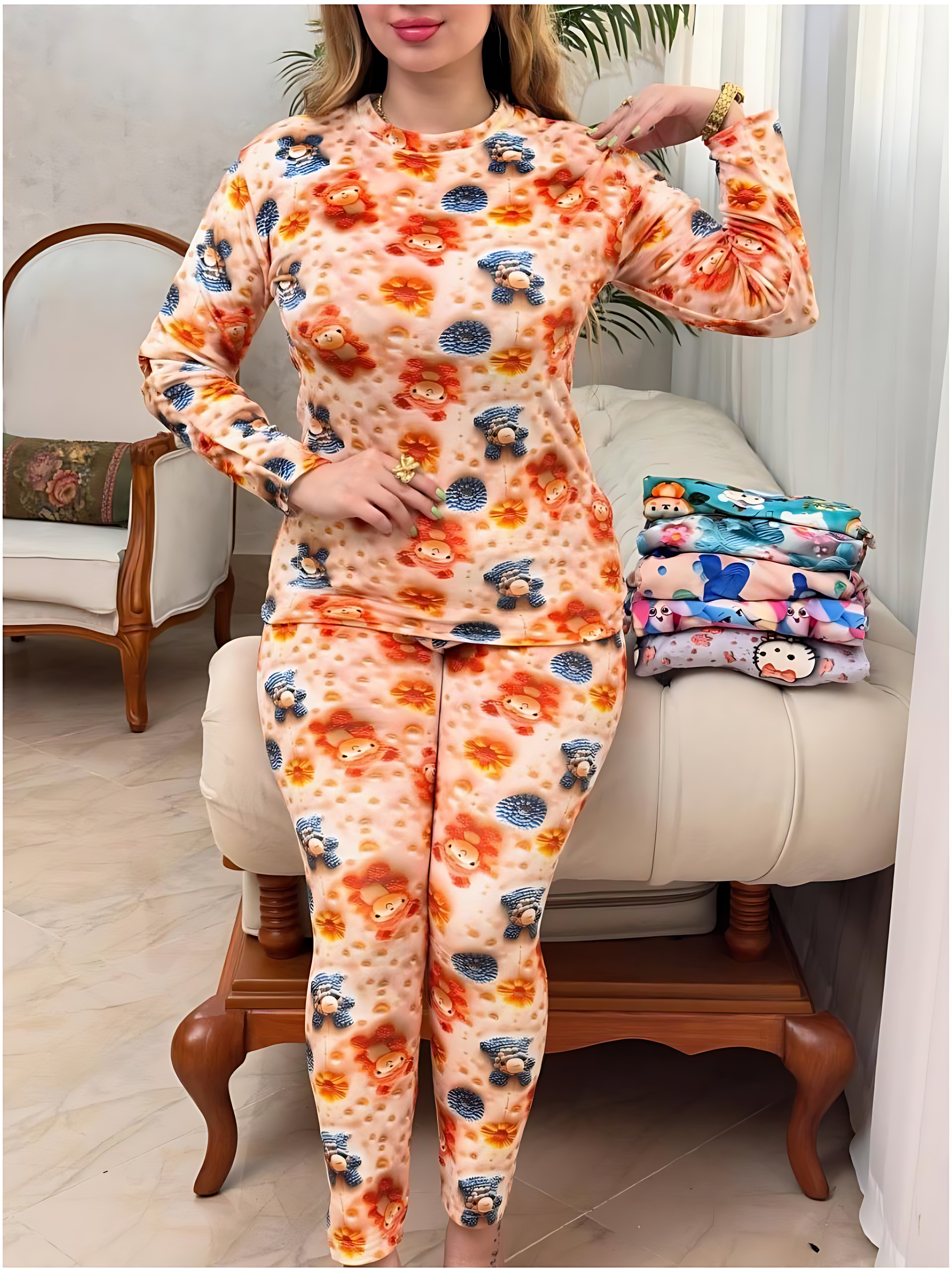 بلوز و شلوار مخمل سه بعدی نرم و لطیف